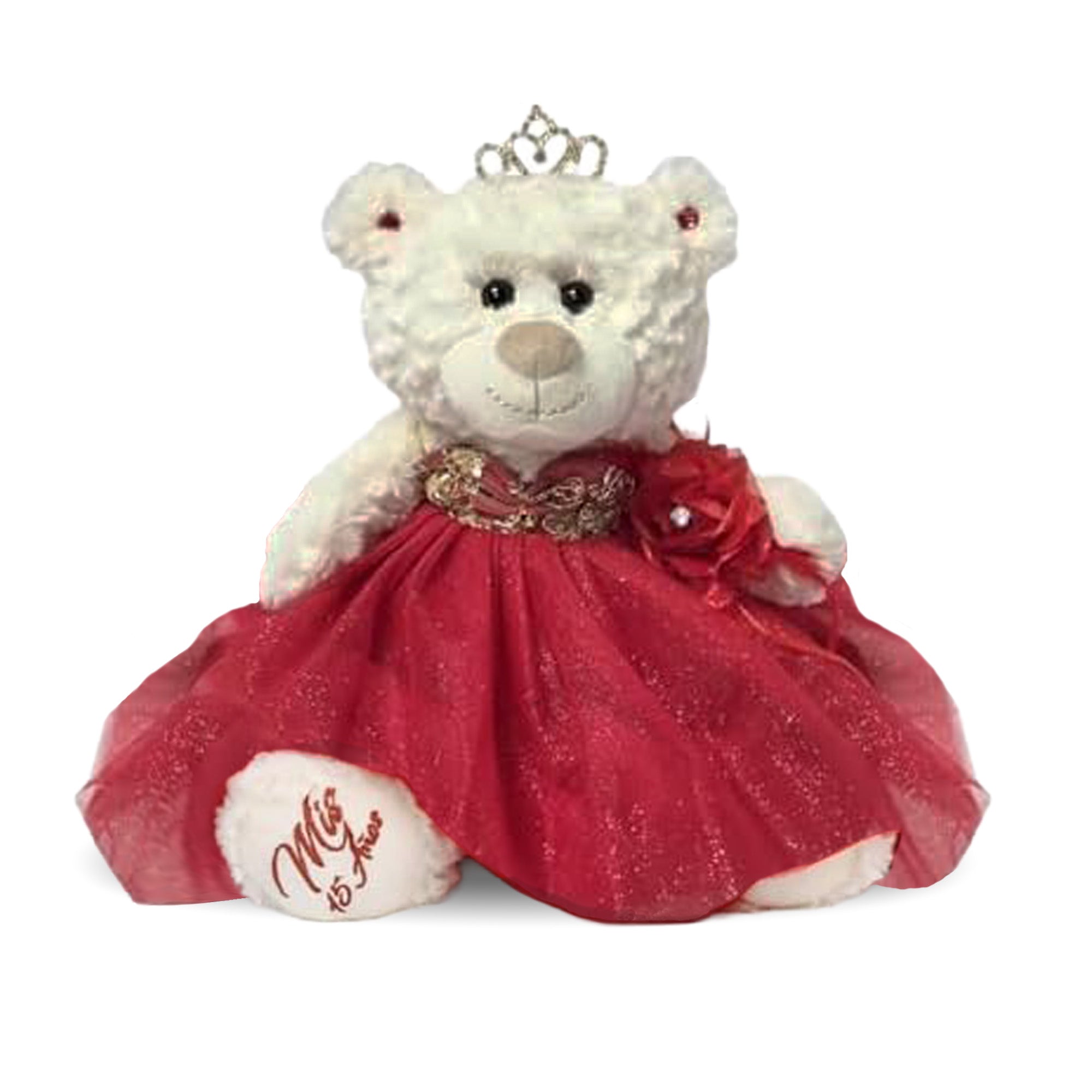 12" Quince White Bear With Embroidery "Mis 15 Anos" - B09631-14G Red