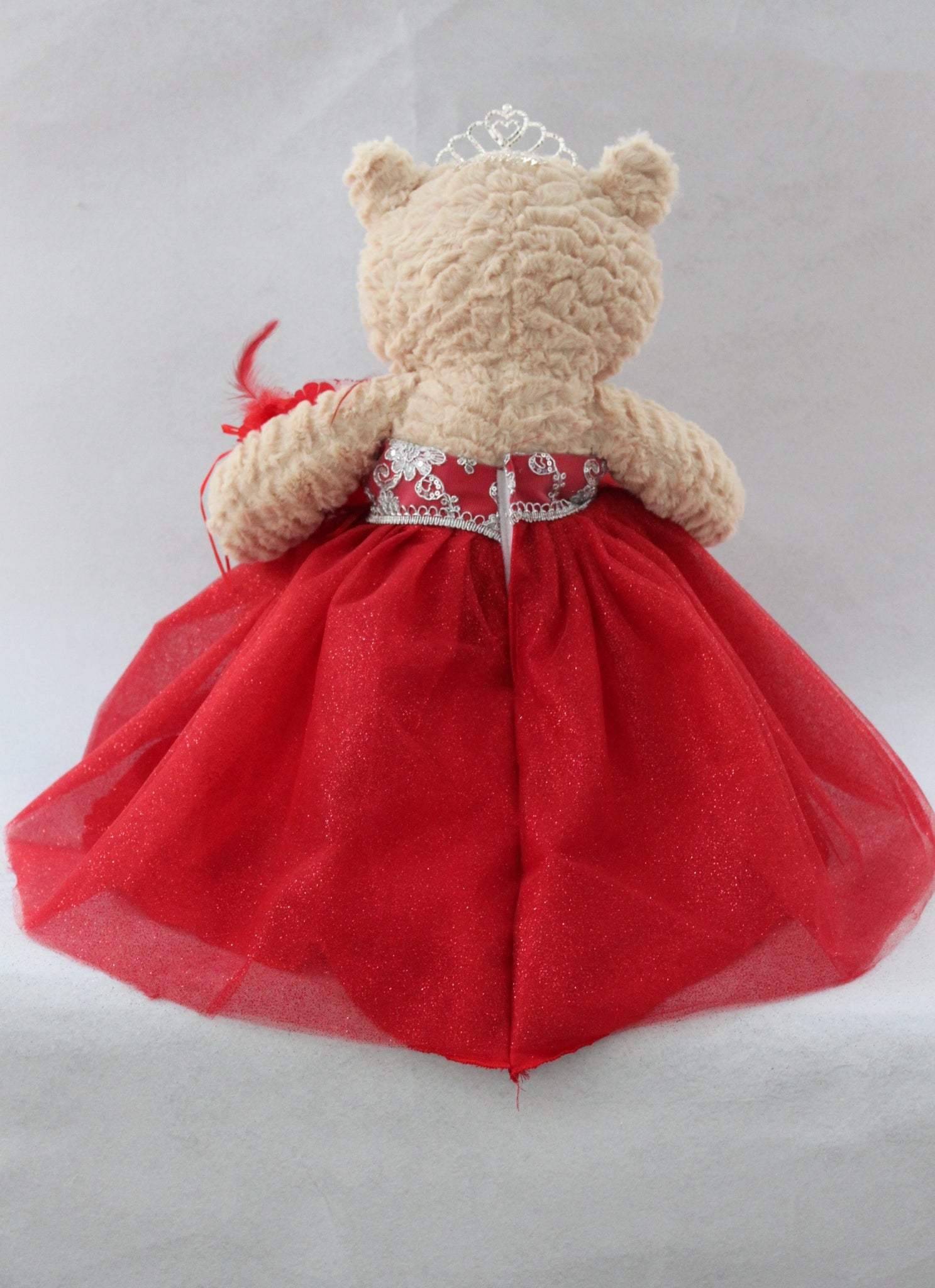 20" Cute Plush Bears for any occasion, for those looking for something other than a doll... we now have the option of these Bears. These bears measure 20" long. Light brown color, soft and cuddly. Unique with long curled lashes. Dress is decorated with rhinestones on top and the skirt is made of 4 layers glittery tulle material. Complete and accessorized with a metal tiara, earrings, and flower on the wrist.