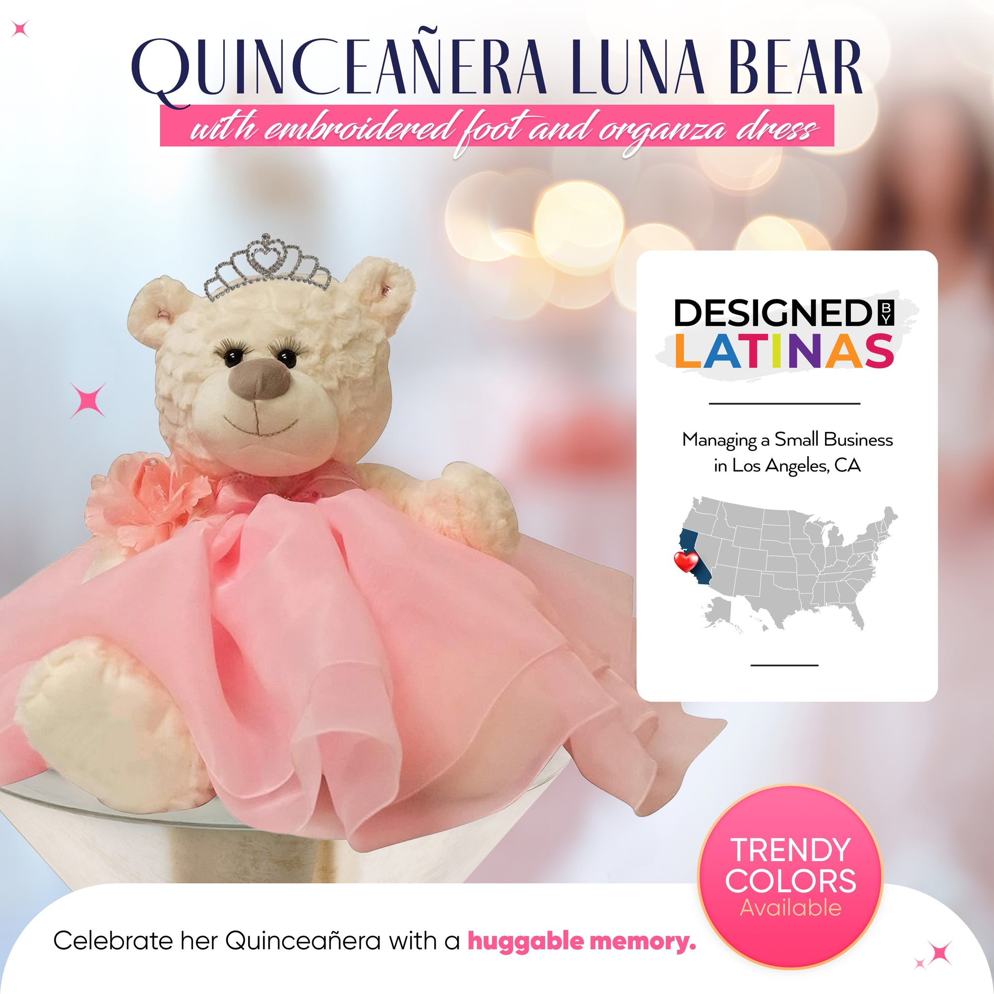 For those that are looking for something other than a doll... we now have the option of Quince Bears. These bears measure 20" long. Crème color, soft and cuddly. Dressed in an elegant, glamorous gown. Unique with long curled lashes. The bust of the dress is decorated with sequins, and the skirt is made up with 2 layers of tulle and satin. The right leg of the bear is embroidered with "Sweet 16". Complete and accessorized with a little tiara, earrings, wrist bouquet.